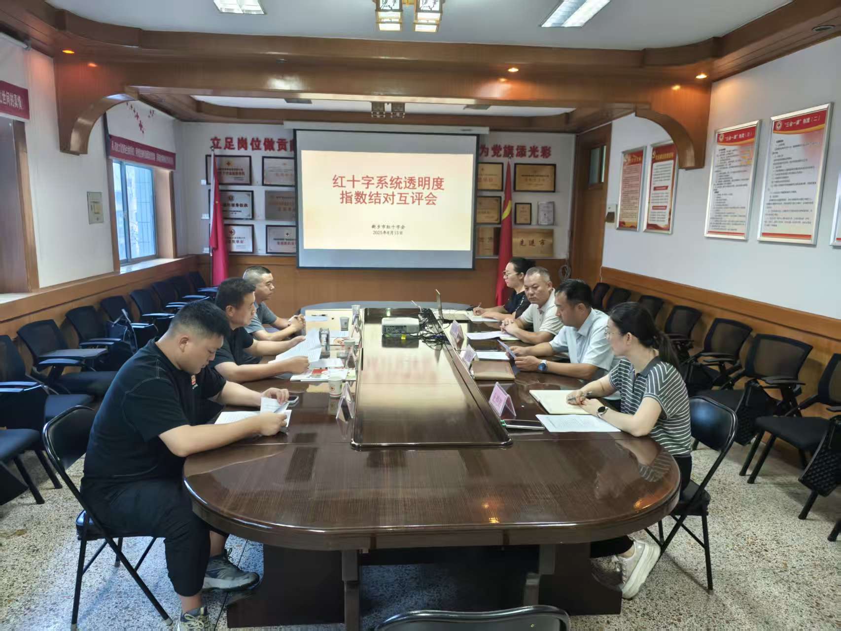 为进一步推动红十字系统信息公开透明,提升社会公信力,近日,驻马店市红十字会党组成员、副会长王应中一行4人赴新乡市红十字会,开展“红透指数”互评交流工作。