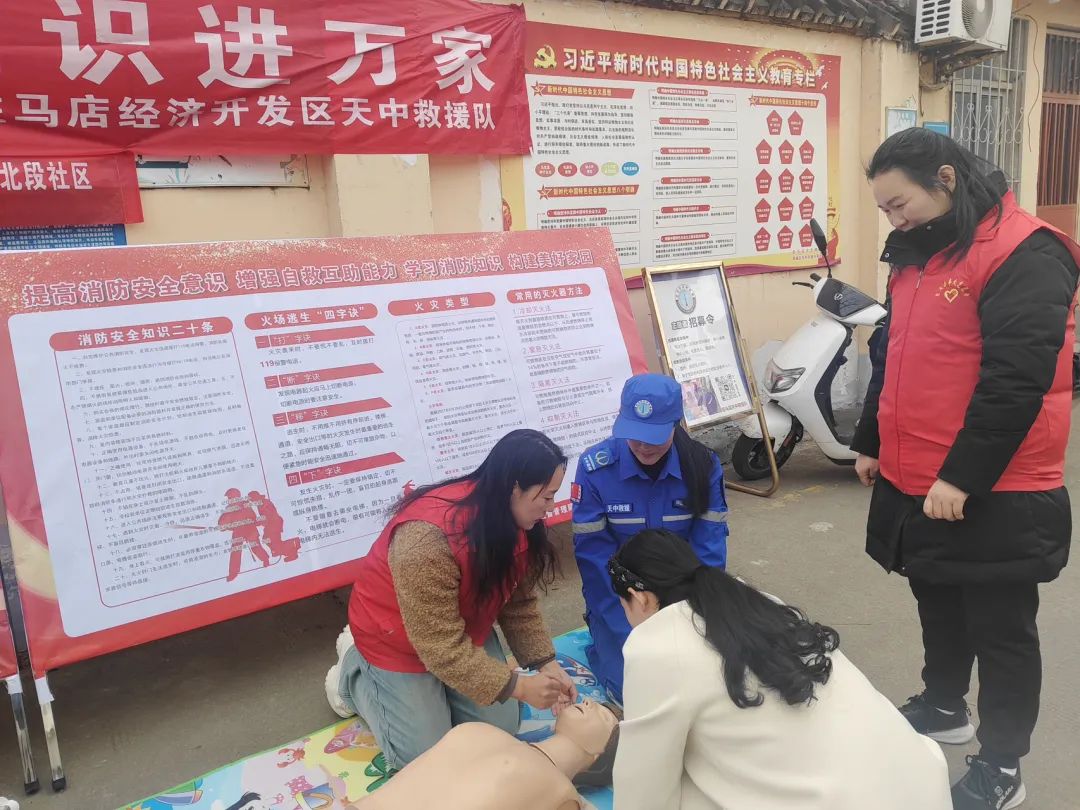 近日,驻马店市经济开发区红十字天中救援队在东风办事处南海路北段社区、市运输公司家属院开展应急救护进社区和学雷锋志愿活动.